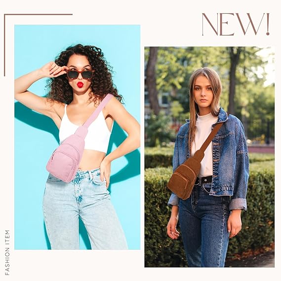 SANSTHS Small Sling Bag for Women Crossbody Purse Fanny Pack Corduroy Chest Bag