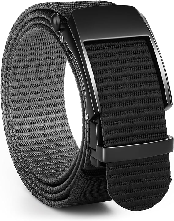 • [ Ratchet Slide Buckle] SANSTHS Nylon belts for men is made of premium zinc alloy buckle, which makes this mens ratchet belt is heavy duty and has strong load-bearing capacity. While the ratchette automatic slide buckle mechanism makes sure the belt stays in place. The ratchet belt buckle is anti-scratch and lasts for years to wear.